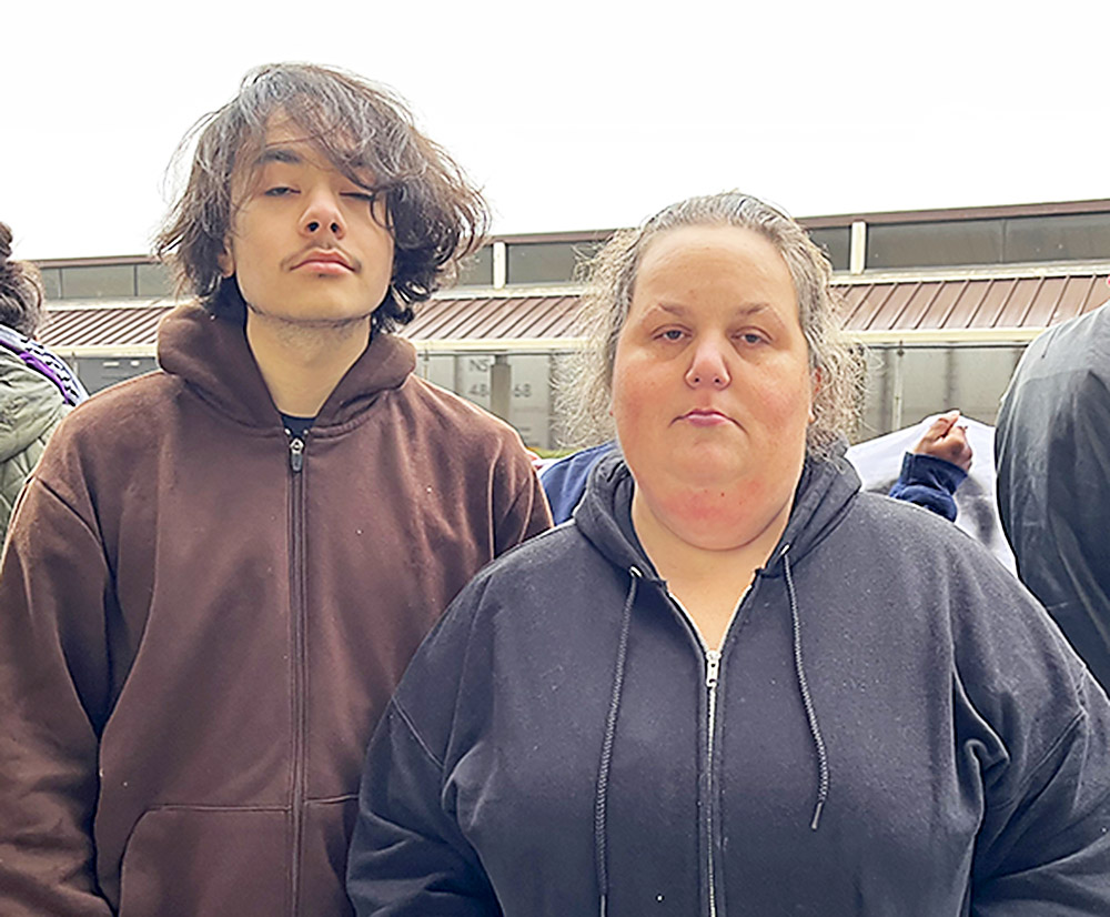 Jessica Espitia and her son, Alex, took part in Saturday’s protest against ICE in downtown Altoona. Alex was present when immigration officers told the family that his father, Pedro Espitia, was being deported to Mexico after more than two decades in the United States. Mirror photo by William Kibler