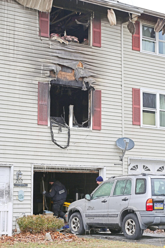- Pennsylvania State Police Fire Marshal Cpl. Scott M. Swasing (left) and Altoona City Fire Chief Adam Free investigate a late Thursday evening fire at a townhouse at 202 Hopewell Drive in Altoona. Mirror photo by Patrick Waksmunski