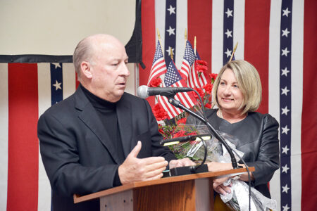 Blair County Arts Foundation 2015 Angel of the Arts award recipients Steve and Nancy Sheetz speak during the annual “A Night for the Mishler” gala fundraiser dinner at the Heritage Discovery Center on March 21, 2015. Mirror file photo by Patrick Waksmunski