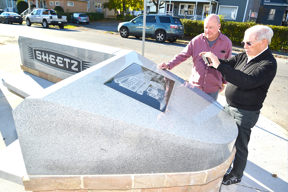 - In this file photo from November 2020, Steve Sheetz (left) watches his brother Bob Sheetz photograph the monument at the site of the original Sheetz Kwik Shopper store along Union Avenue in Altoona. Mirror file photo by Patrick Waksmunski /