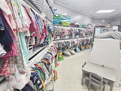 Racks of items available to those in need line the walls at Naomi’s Nursery Blessings, 107 Spring St., Williamsburg. Courtesy photo