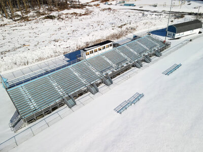 - The Penn Cambria High School football field home bleachers and pressbox are seen from an aerial view. Mirror photo by Patrick Waksmunski