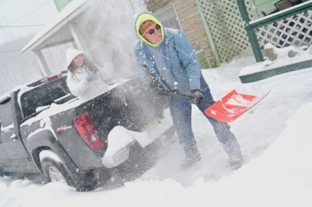 - Jeff Anslinger of Altoona shovels snow along the 2500 block of Lark Avenue on Sunday.Mirror photo by William Kibler
