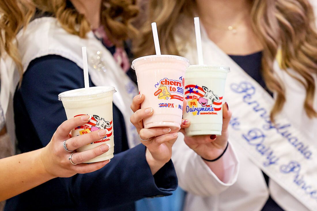 - Pennsylvania state dairy princesses show off the 2026 Pennsylvania Farm Show’s milkshakes, one of the most popular attractions at the annual event. Photo courtesy Pennsylvania Farm Show