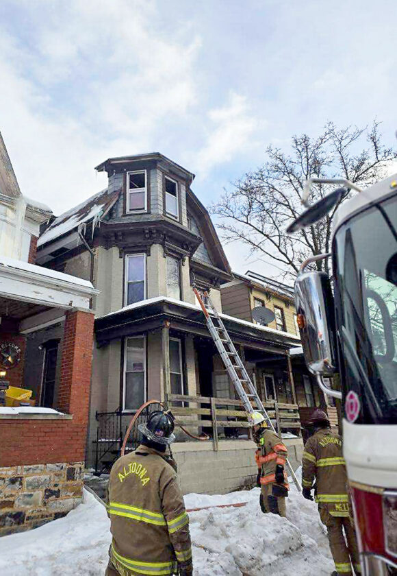 - Altoona firefighters battle a blaze in a third floor apartment on the 800 block of Sixth Avenue that sent a man in his 40s to a Pittsburgh hospital for treatment of life-threatening injuries from smoke inhalation. Courtesy photo