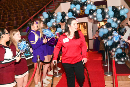 - Denielle Minori of Altoona makes her entrance on the red carpet during the Night to Shine event at the Jaffa Shine Center on Friday evening. Mirror photo by Patrick Waksmunski