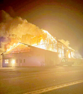 Firefighters focused first on “protecting the exposure” — the two freestall barns, with firefighters going inside to search for and extinguish small fires started by the sparks in the bedding on the floors.