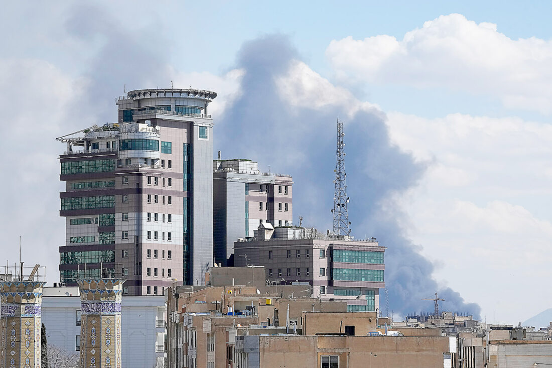 Smoke rises after a strike in Tehran, Iran, on Sunday. The U.S. and Israel pounded targets across Iran on Sunday as part of an intensifying military campaign following the killing of Supreme Leader Ayatollah Ali Khamenei. The Associated Press