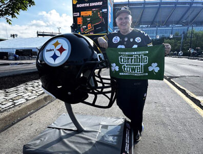 Pittsburgh Steelers’ International Fan of the Year Tom McCormack came from Dublin, Ireland, to watch the NFL Draft. McCormack announced the Steelers’ sixth round draft pick last year — Ohio State quarterback Will Howard. Observer-Reporter photo by Karen Mansfield