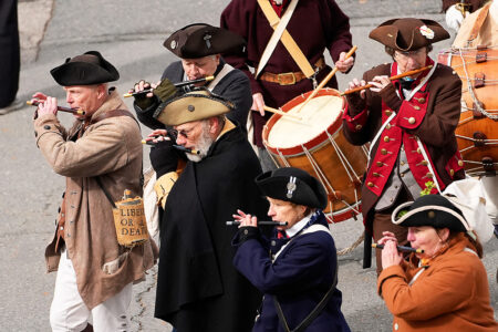 - Members of a fife and drum band march in a procession during an Evacuation Day ceremony marking the 1776 departure of British troops from the city during the American Revolutionary War on March 17 in Boston. The Associated Press