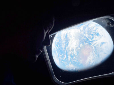 In this photo provided by NASA, Commander Reid Wiseman looks at the Earth from a window aboard the Orion spacecraft Integrity during the Artemis II mission en route to the moon on Thursday. NASA photo via AP