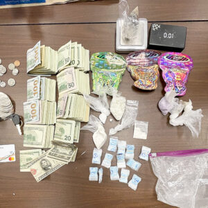 The search also turned up a loaded, 22 caliber semi-automatic rifle, along with $7,076 in cash. Additionally, multiple pieces of packaging materials, scales, multiple cellphones and “owe sheets” were found.