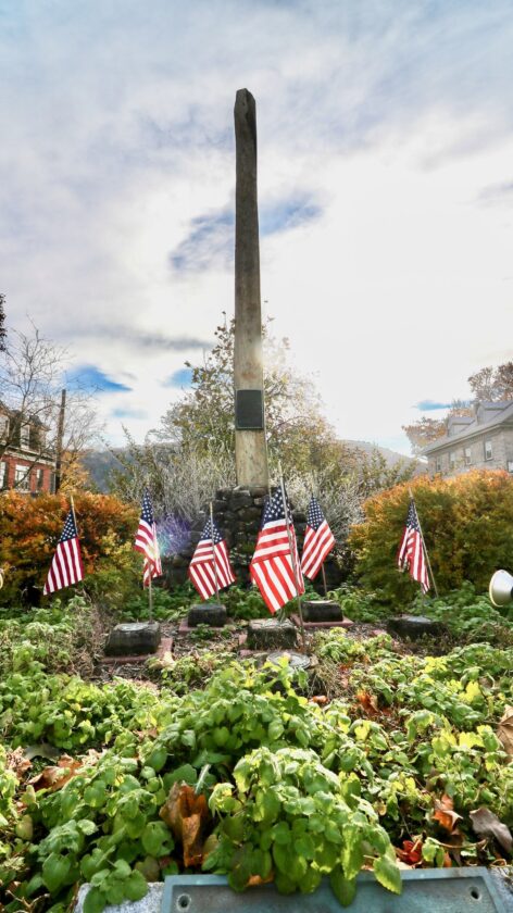 Photo courtesy of Huntingdon Landmarks Inc.’s Facebook / Huntingdon’s Standing Stone replica monument is situated between Penn Street and Third Street.