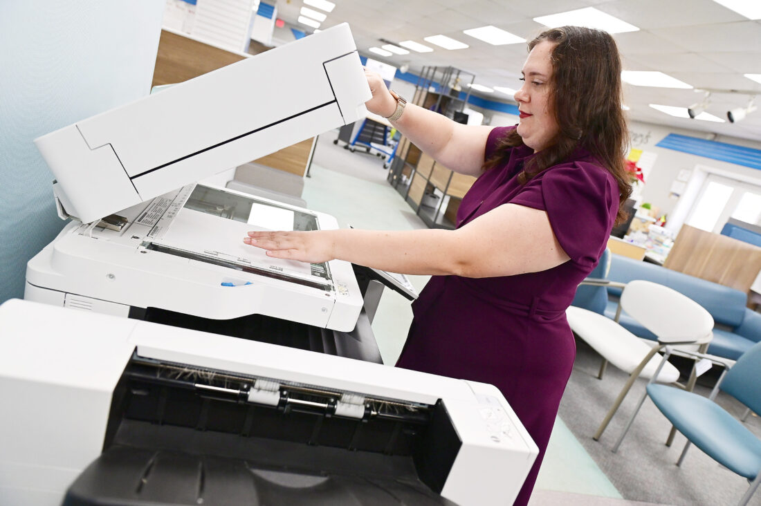 Director of Finance Laura Green makes a photocopy. McCartney’s is a full service Canon dealer. Mirror photo by Patrick Waksmunski
