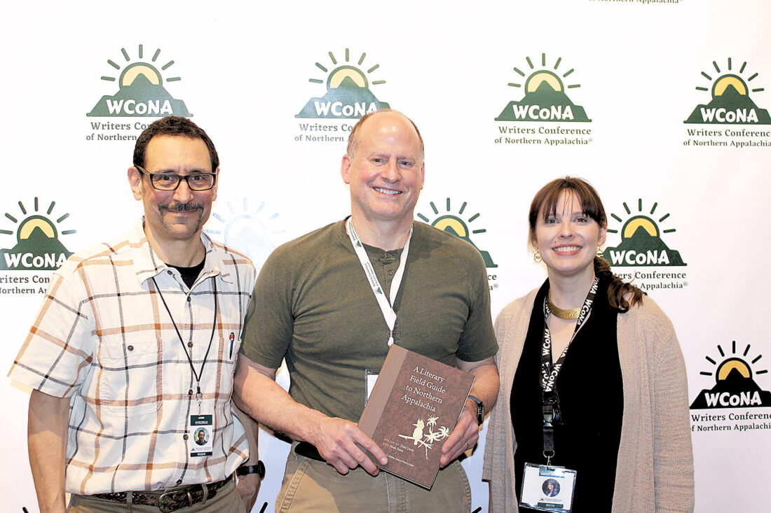 Writer’s Conference of Northern Appalachia President PJ Piccirillo (from left) stands next to Todd Davis, editor of “A Literary Field Guide to Northern Appalachia,” and director of WCoNA book of the year Kimberly McElhatten. Courtesy photo