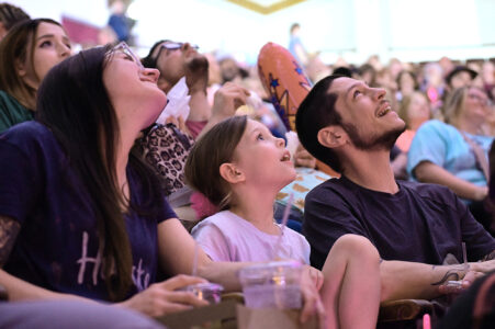 Melissa Thompson, Jill Lingafelt, 8, and Alex Lingafelt, all of Lilly, watch the Sensational Star Riders Mid-Air Motorcycle Madness.