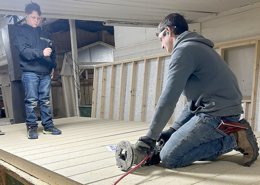 Nicolas Gephart (left) records a carpenter at American Structure for the Chestnut Ridge Middle School for the What’s So Cool about Manufacturing video project. Courtesy photo
