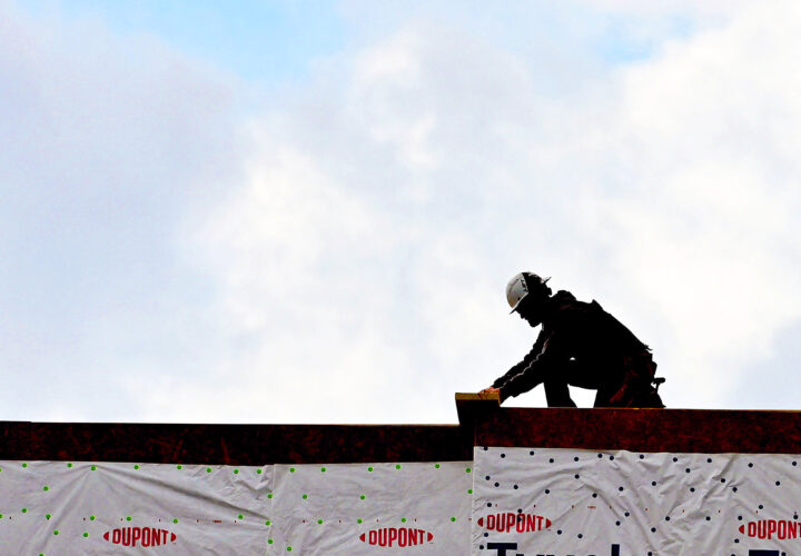 A carpenter works on the construction of a Jeff S. Long Construction project on the 2500 block of Seventh Avenue in Altoona on Wednesday afternoon. Mirror photo by Patrick Waksmunski