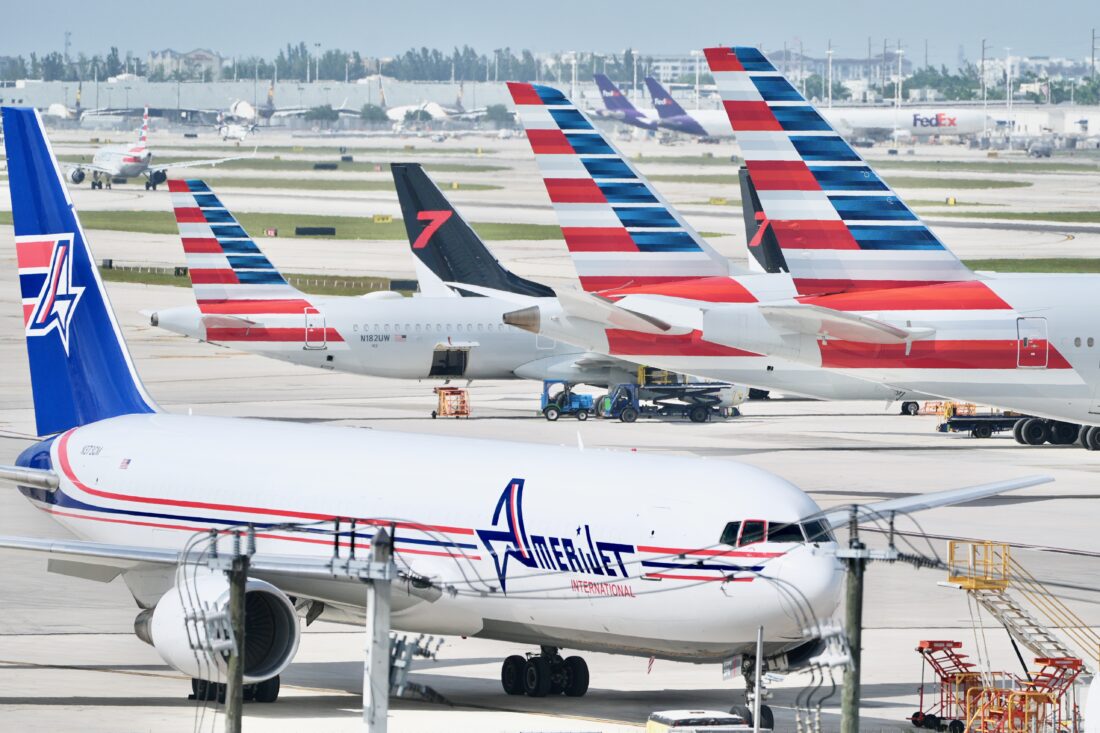 The Associated Press / Jets sit parked on the tarmac at Miami International Airport Monday.