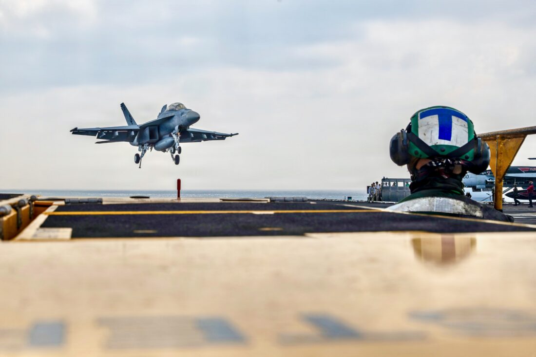 U.S. Navy via Associated Press / A Boeing F/A-18E Super Hornet lands on the Nimitz-class aircraft carrier USS Abraham Lincoln in the Indian Ocean on Jan. 22.