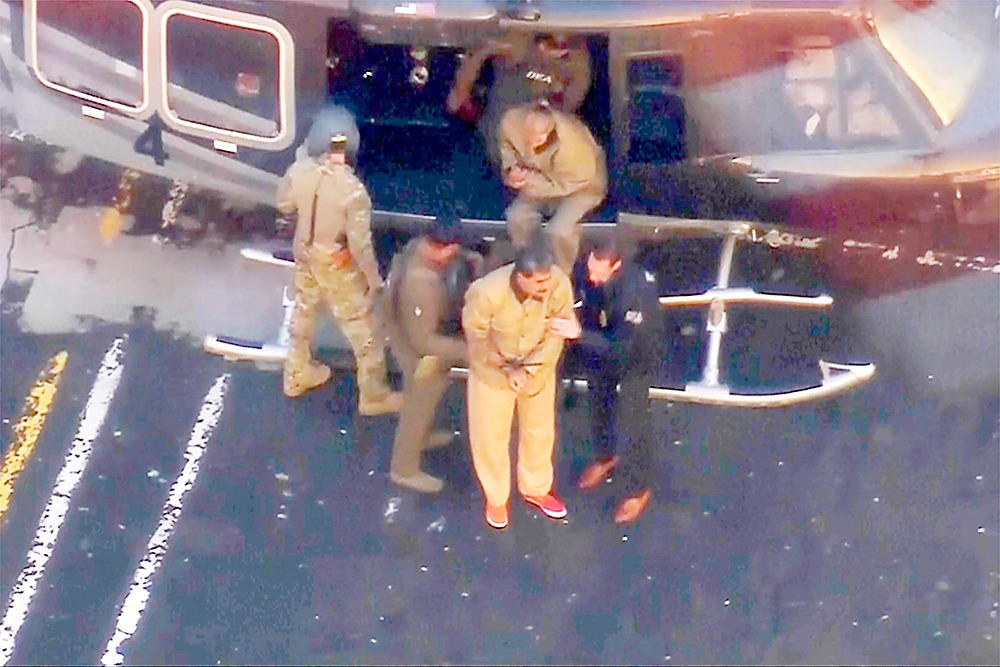 This image taken video shows Venezuelan President Nicolas Maduro getting off a helicopter on his way to Manhattan Federal Court, on Monday in New York. WABC via AP