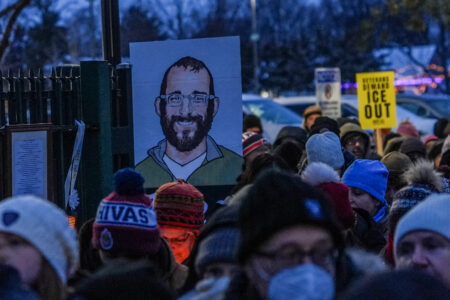 Austin Bradbury uses a chainsaw to remove a tree above a road Friday, Jan. 30, 2026, in Nashville, Tenn. (AP Photo/George Walker IV)