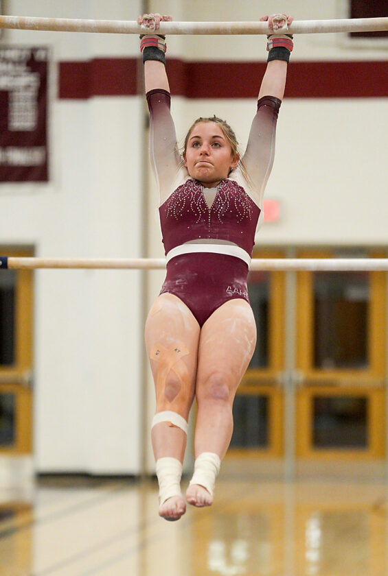 Maddy Pastore competes on the Uneven Bars Wednesday night at The Fieldhouse.