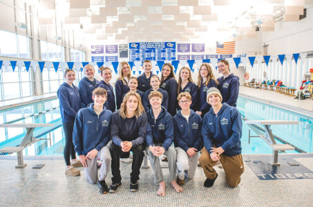 Members of the Blair Regional Tigersharks swim team spent this past weekend competing at the 2026 Pa. YMCA State Championships at West Virginia University. Team members include (from left): First row — Owen Dunklebarger, Charlie Pollock, Patrick Van Kleunen, Nik Snowberger and Kaden Henderson. Second row — Jackie Bevan, Addison Smith, Audrey Bandstra, Julia Van Kleunen, Holland Boone, Scott Merrill, Brynn Merrill, Claire Bandstra, Ella Heverly, Kathleen Hodge and Margaret Bandstra. Missing from the photo is Matthew Eckenrode.