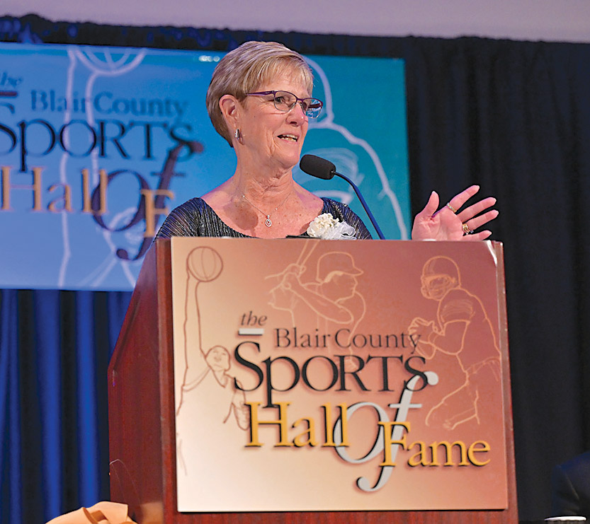 04/11/26 Blair County Sports Hall of Fame Induction. Cathy Beam speaks.