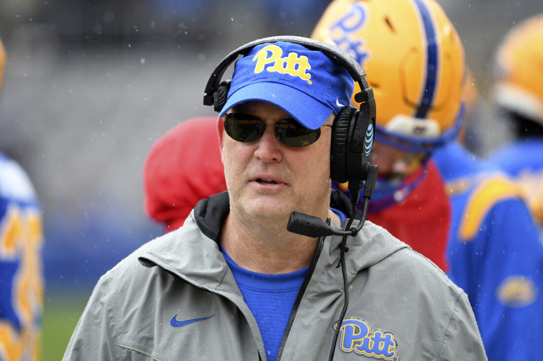FILE -Pittsburgh offensive coordinator Frank Cignetti, Jr. watches play during their annual NCAA football intrasquad Blue-Gold scrimmage game, Saturday, April 9, 2022, in Pittsburgh. Cignetti was fired by Pitt head coach Pat Narduzzi on Sunday, Nov. 26, 2023, a day after the Panthers finished 3-9. (AP Photo/Philip G. Pavely, File)