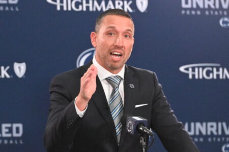 Penn State football coach Matt Campbell speaks during his introductory press conference on Monday at Beaver Stadium.