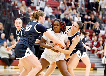 The Lady Lions’ effort was accentuated by the fact that it was put forth with injured sophomore star Brionna Hudson sidelined for the time being. Several other players picked up the slack, however, with Moore scoring a team-high 15 points and adding a team-high eight rebounds, and Harpster and Eyer chipping in 12 points apiece, with all of Harpster’s points coming on 3-point shots.
