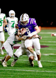 Senior wideout-cornerback Tyson Lestochi enjoyed another big game on both sides of the ball Friday, returning an intercepted pass 25 yards for a touchdown early in the second quarter, and catching a 26-yard scoring pass from Coach Wheeler’s son, sophomore quarterback Justin Wheeler, later in the second period.