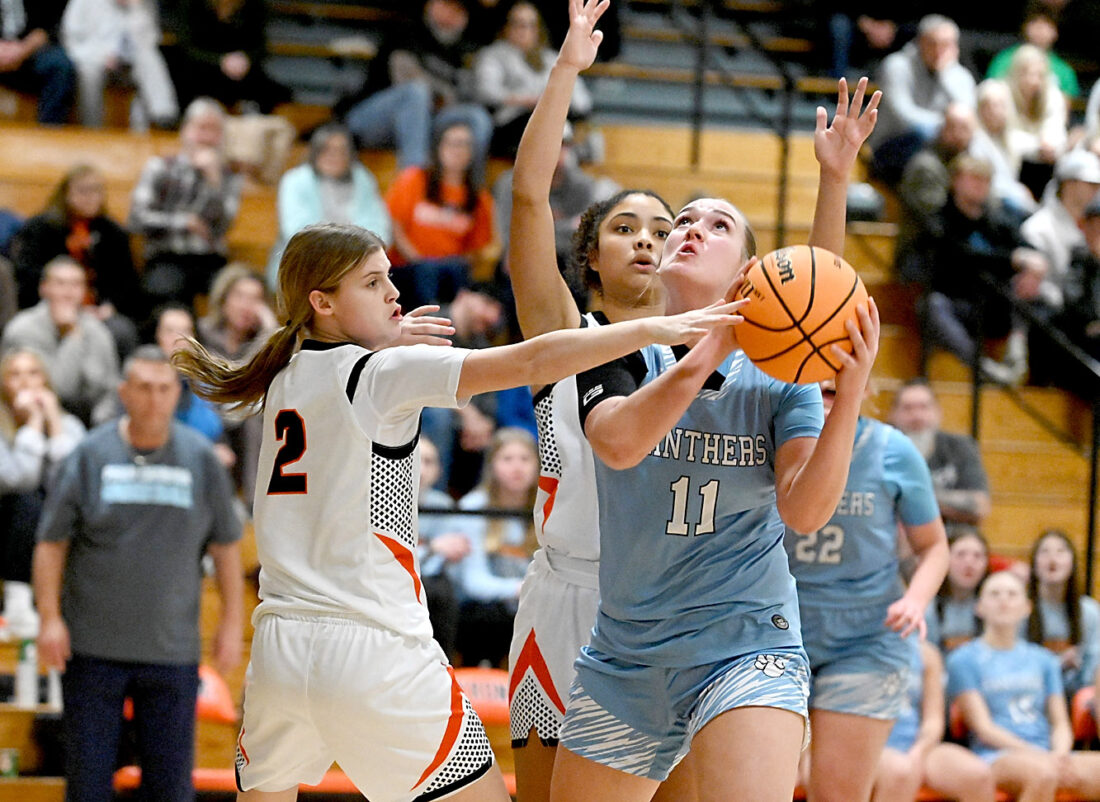 Lily Gergley’s 3-pointer at the end of the first frame started an 8-1 spurt by the Panthers that saw them hold a 19-10 edge when Reagan Ronan hit a trey at 6:22.
