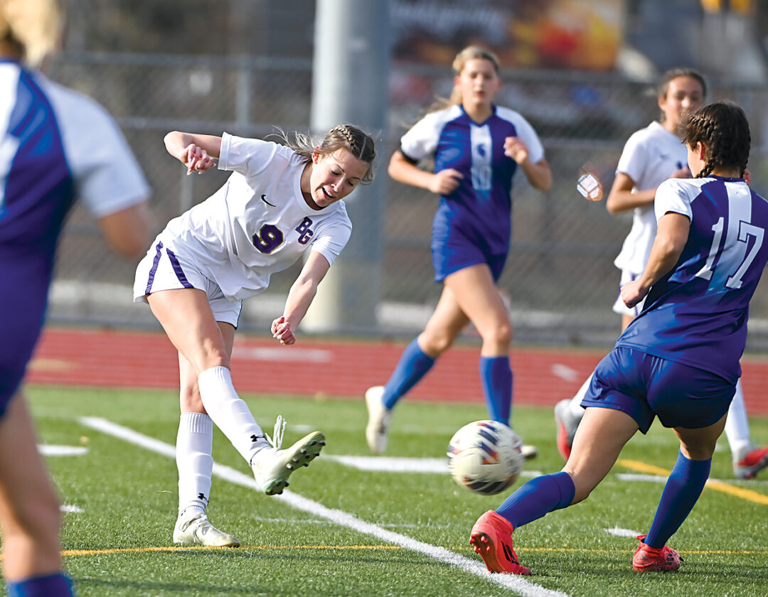 Just under three minutes in, Meggie Ritchey crossed the ball into the box for BG where Emma Marasco’s shot was saved, then rebounded to Delaney Lechner, whose kick hit off a defender back to Marasco who found the back of the net.
