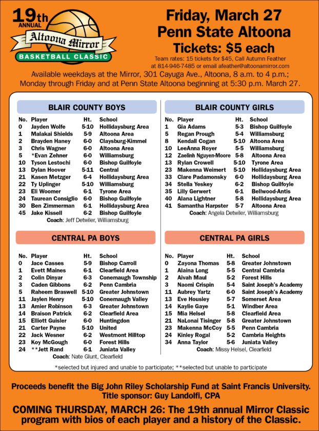 Rosters announced for 2026 Altoona Mirror Basketball Classic