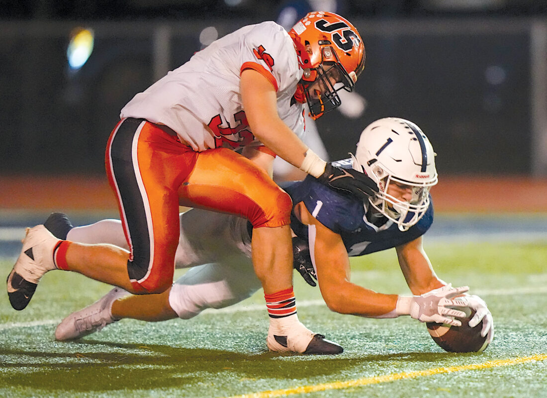 The Tigers’ defense held Jersey Shore to a single yard on two running plays into the line, and with 22 seconds left, a bad exchange in the middle of a scrum on third down was recovered by Hollidaysburg junior outside linebacker Josh Banks back at the 10-yard line, preserving the Tigers’ victory in Hollidaysburg’s homecoming game.