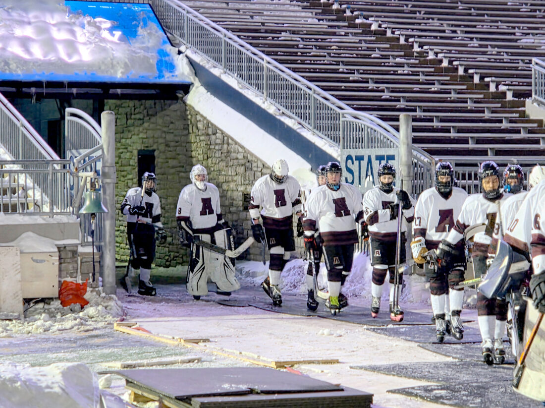 Outdoor hockey is becoming more popular ever since the NHL’s Winter Classic inception on New Year’s Day in 2008, but it’s still rare in the high school ranks.