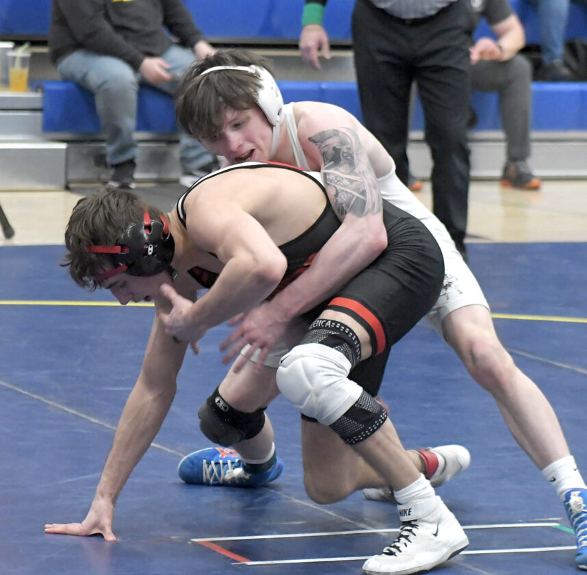 Photo for the Mirror by Paul Schofield Altoona’s Braiden Weaver (top) battles Cael Yanek of Moon High School during last weekend’s regional tournament.