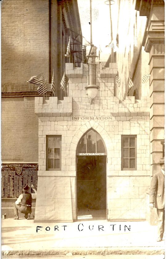 This information booth was erected for the Union Veterans Legion #17 of Altoona (veterans who fought in the Civil War). The organization’s national convention was held Sept. 9-10, 1924, in Altoona. The information booth stood between the old Mechanics Library, on left, and the Central Trust Bank, on right. Today, the plaque is displayed on the corner of 13th Avenue on Altoona’s City Hall. The photo was provided by Michael Farrow of the Blair County Historical Society.